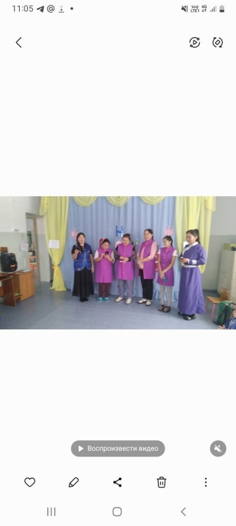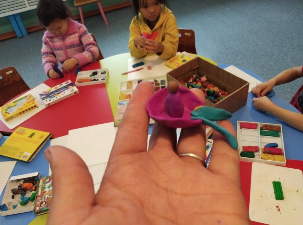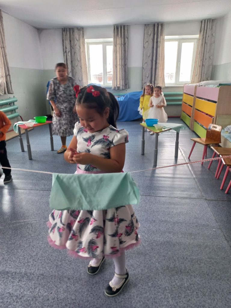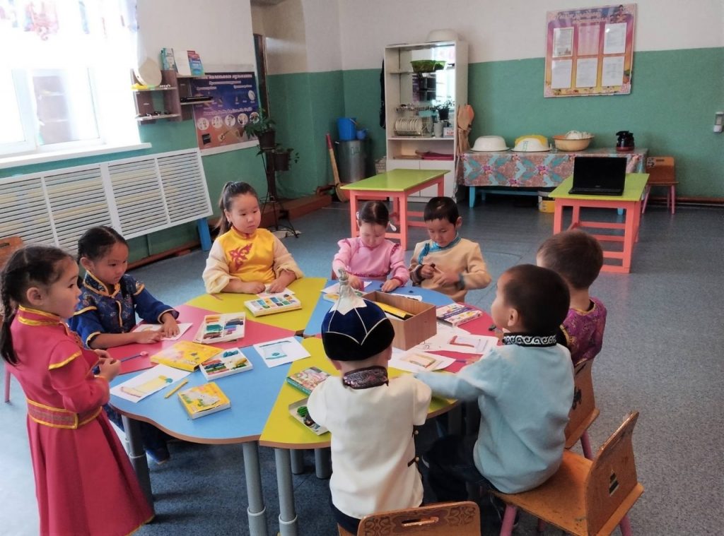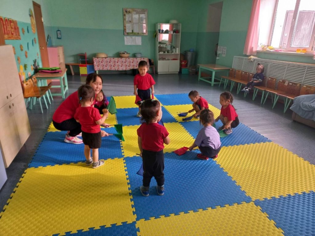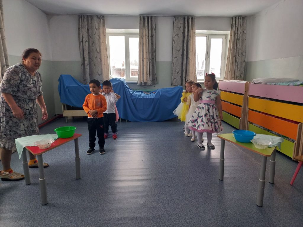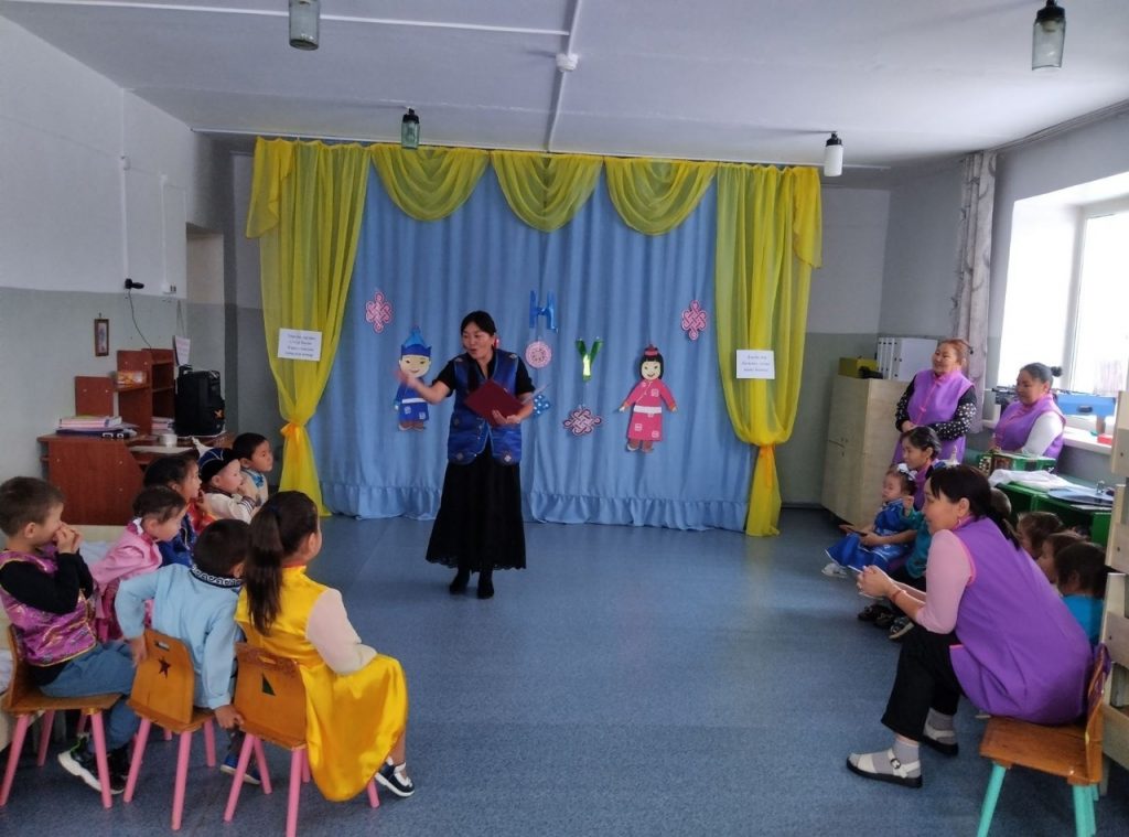 В течении недели провели беседу с нашими детьми «О дне тувинского языка», ознакомили с тувинскими народными сказками и их героями. Ознакомили с тувинской игрой «Аскак-кадай» и провели эту игру в группах, также «Тевек». Детям очень понравилась игра «Аскак-кадай» и все с удовольствием играли. Смотрели тувинские мультфильмы. Из пластилина лепили тувинскую шапку (довурзак борт). По раскраске: национальную обувь (тыва кадыг идик). Провели пальчиковые игры, пели коротенькие песни про Туву, научились танцевать «Дээн-дээн». И в конце 02 ноября 2023 года провели итоговый утренник «Торээн тыва дылывыс хуну-биле!»