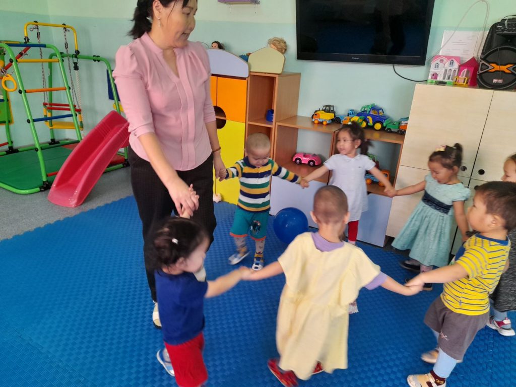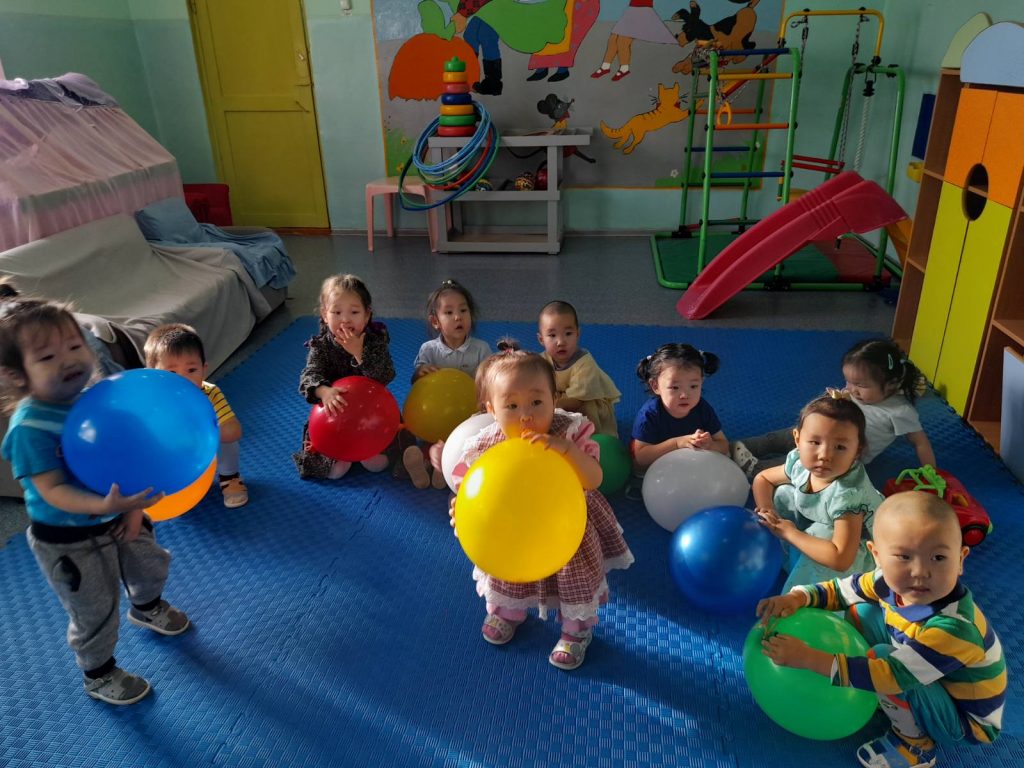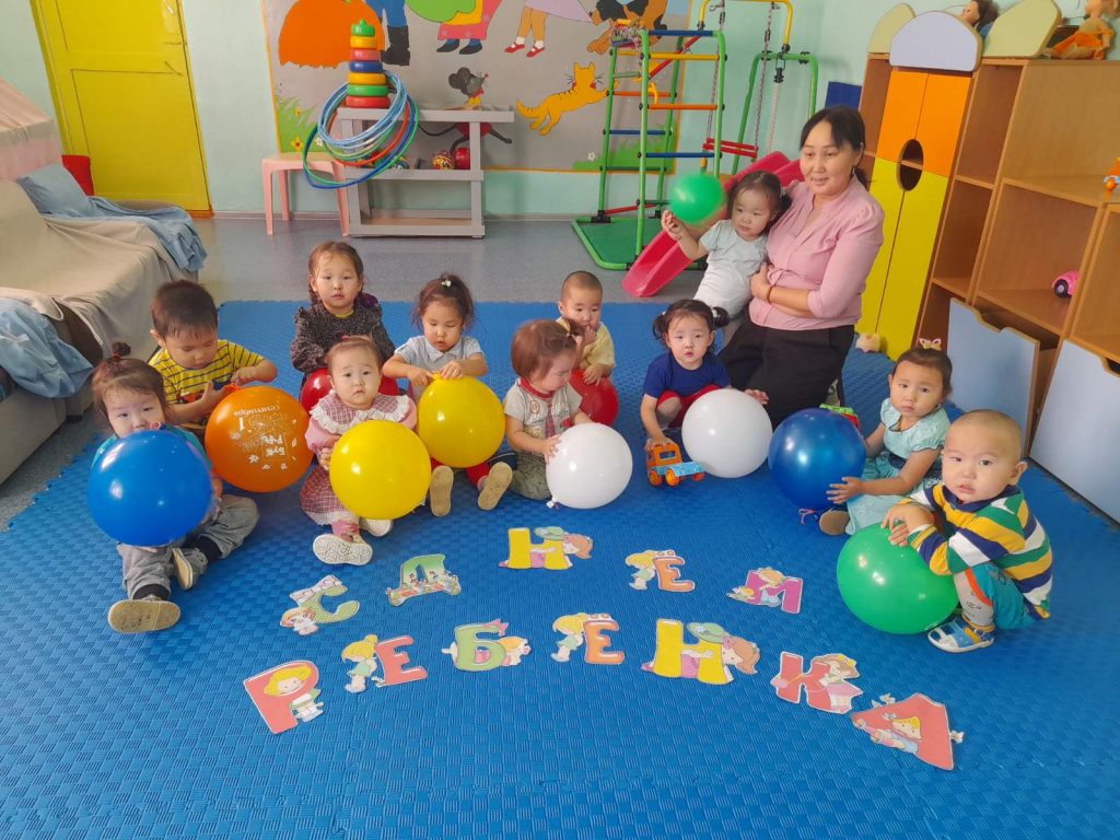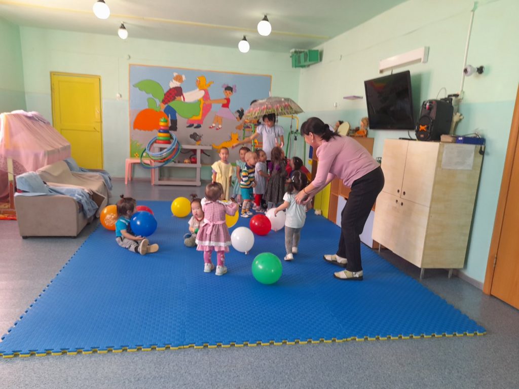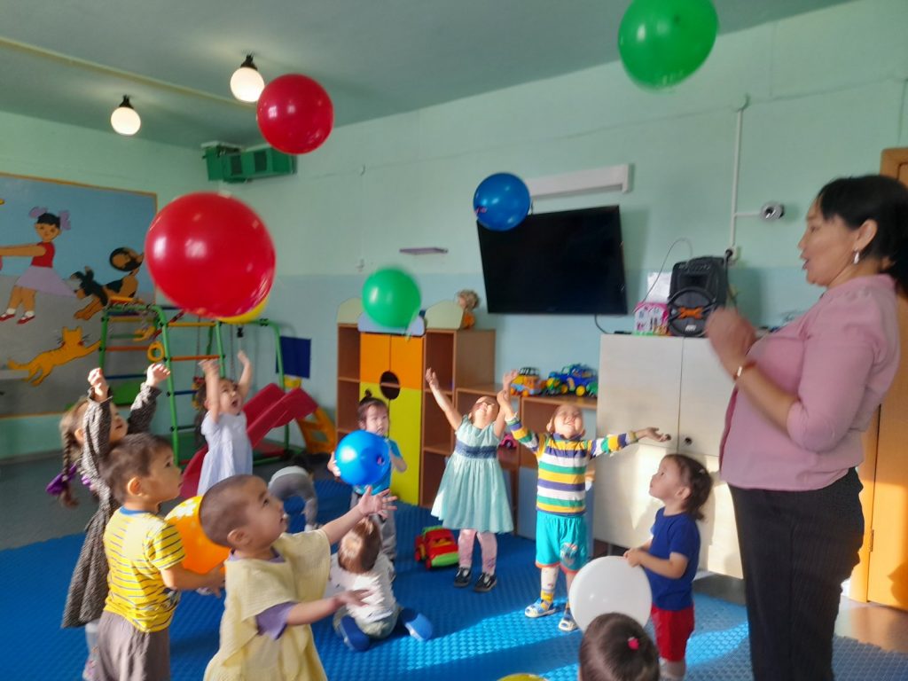 В честь Всемирного Дня ребенка поиграли в игру «Солнышко и дождик», «Арбуз» и весело играли с воздушными шарами.