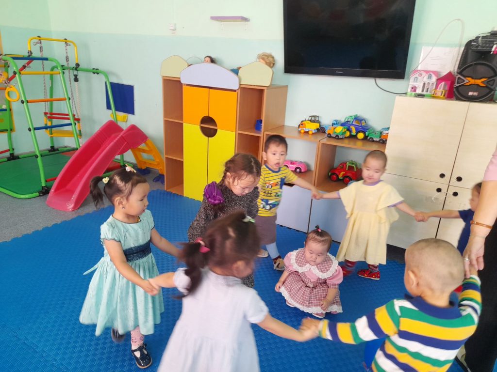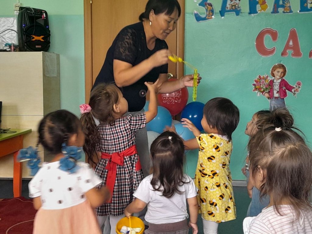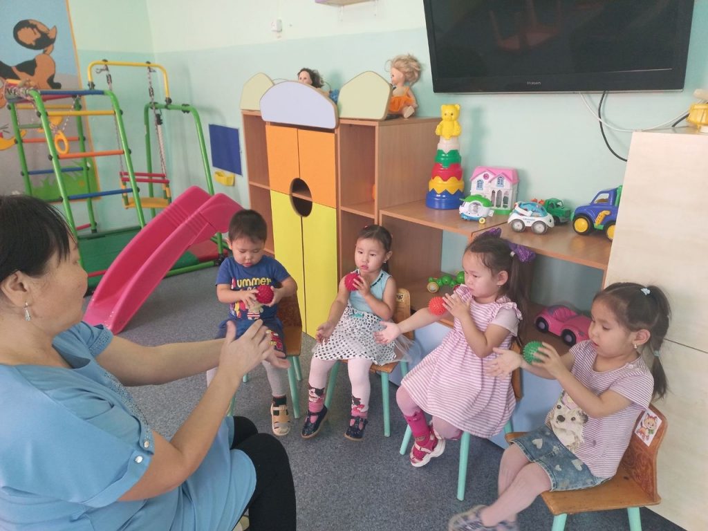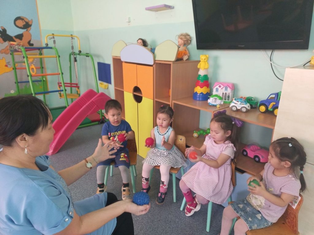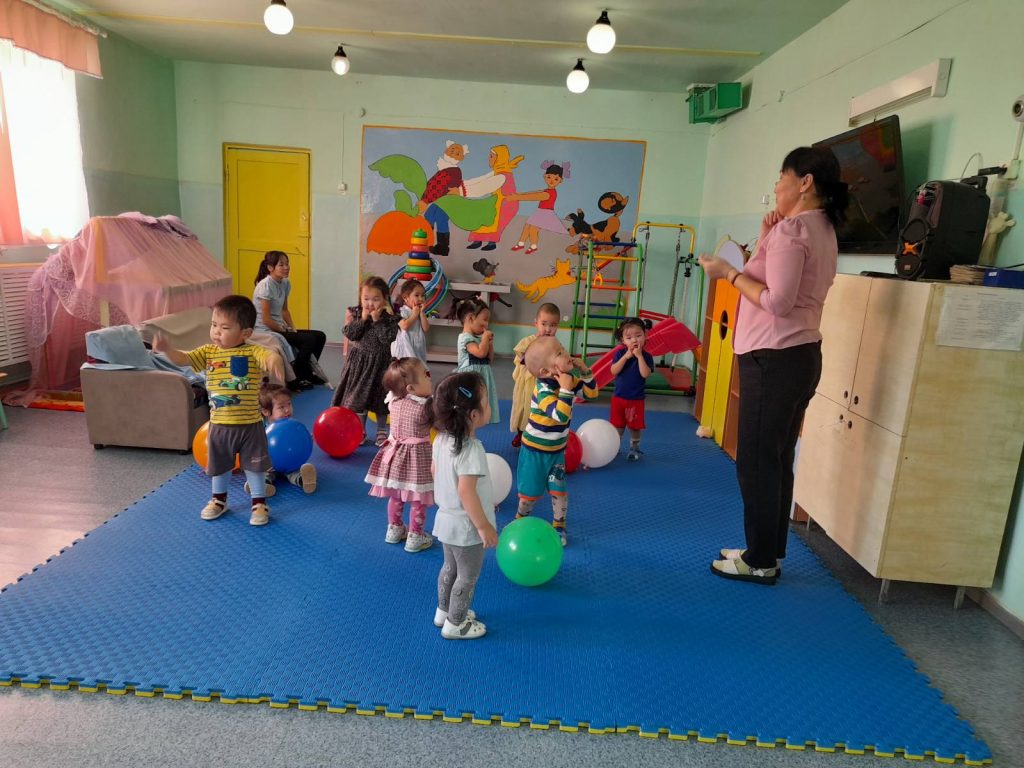 В честь Всемирного Дня ребенка поиграли в игру «Солнышко и дождик», «Арбуз» и весело играли с воздушными шарами.