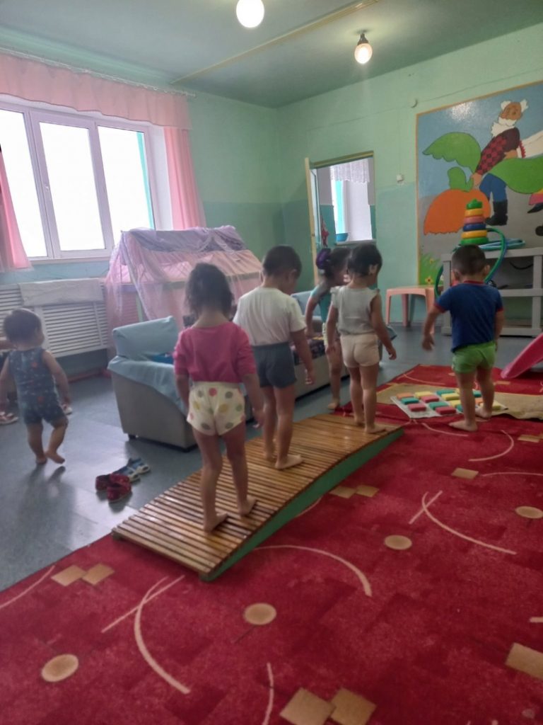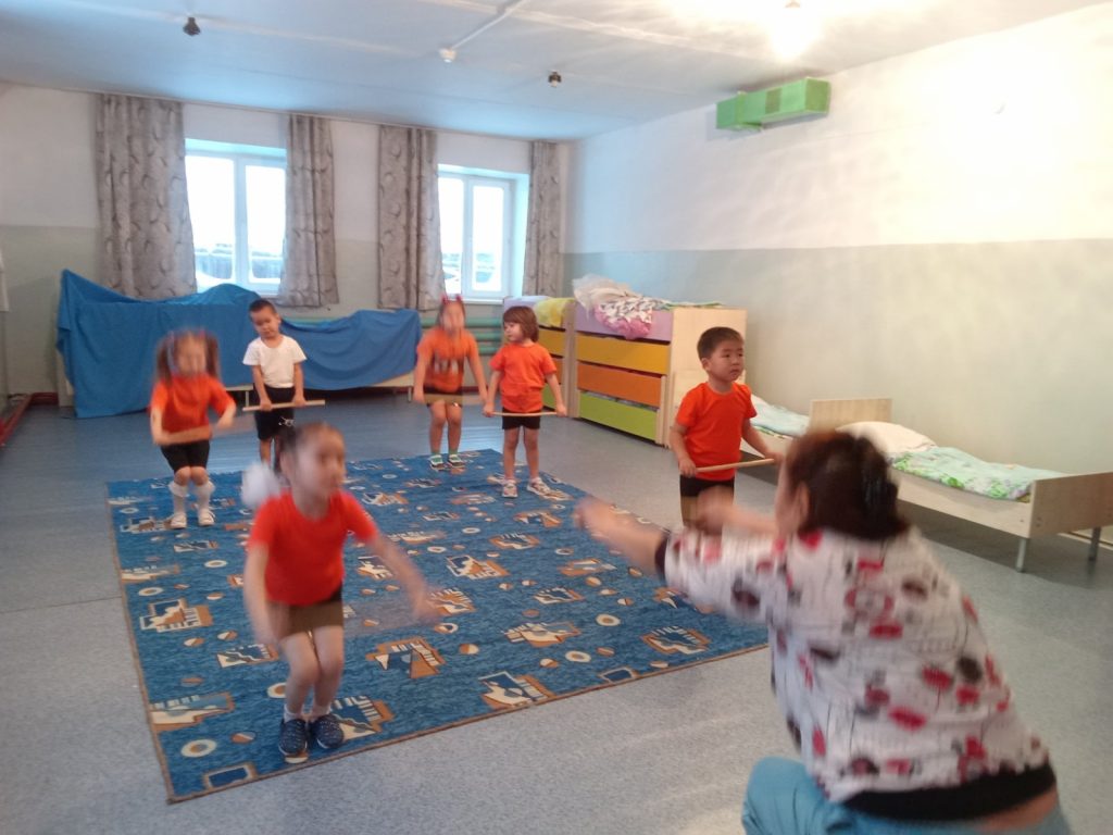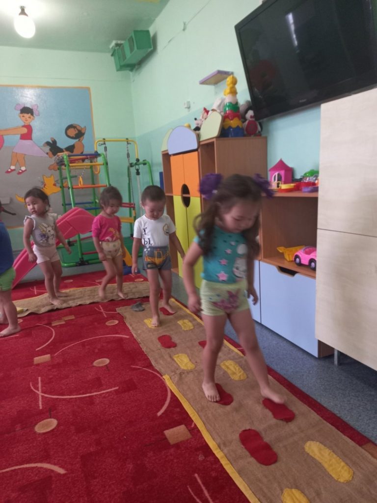 Таким образом, в нашем детском саду каждый день проводятся оздоровительные гимнастики после сна, ходьба по массажным дорожкам под единым хештегом: #Детско_юношеский_спорт17. для обеспечения детям плавного перехода от сна к бодрствованию, подготовка к активной деятельности, профилактика плоскостопия, Двигательная активность данного режимного момента позволяет ребенку после сна быстрее войти в активное состояние, укрепляет мышечный тонус, создает хорошее настроение.