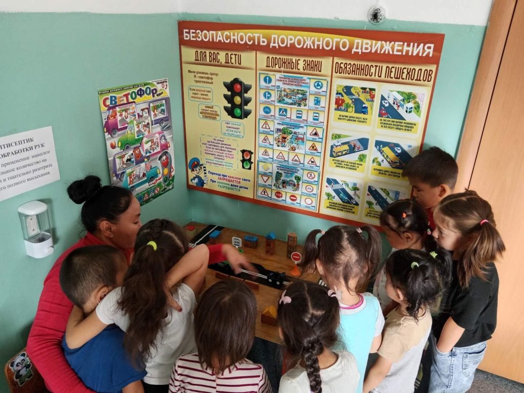 Сегодня 11 сентября 2024 года в старшей разновозрастной группе нашего детского сада была проведена разъяснительная беседа с детьми по закреплению знаний детей о правилах дорожного движения.